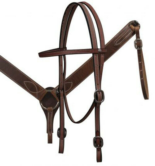 Showman Leather headstall with reins and matching breast collar. MPN 5002-5011