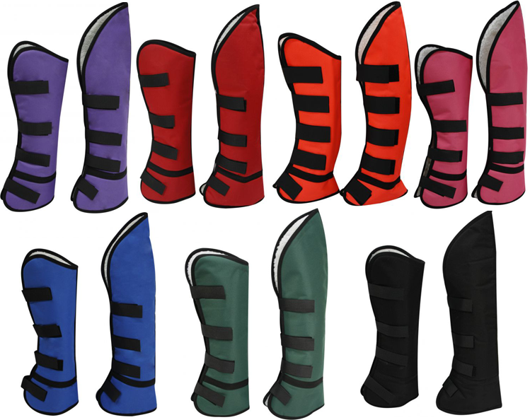 Shipping boots sold in set of four. Constructed of Cordura nylon outer shell with fleece lined inner shell with Velcro closures for perfect fit. Measures 21″ tall for front legs and 25″ tall for back legs. MPN 22260