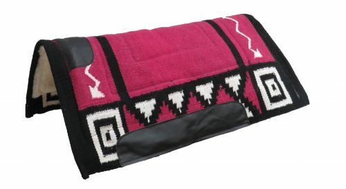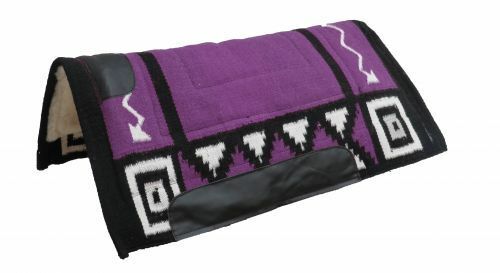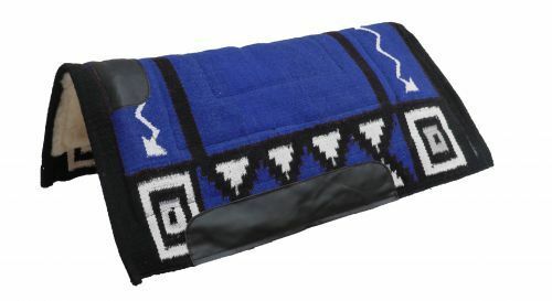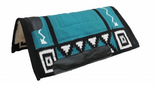 36″ x 34″ woven wool top cutter style saddle pad with Kodel fleece bottom. This pad features a woven wool top with a Navajo diamond design and oversized top grain wear leathers.  MPN 6234