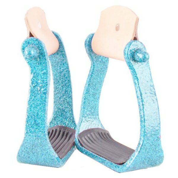 Showman Glitter Epoxy aluminum stirrups. This stirrup features light weight aluminum with a rubber grip tread bottom and are epoxy coated with glitter. MPN 8085