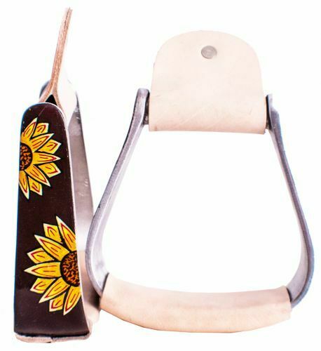 Showman Youth/Pony Aluminum STIRRUPS w/ Leather Tread & SUNFLOWER Design