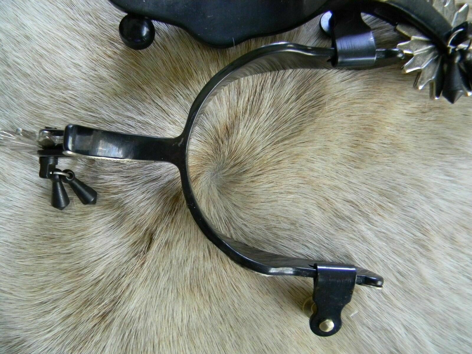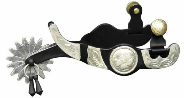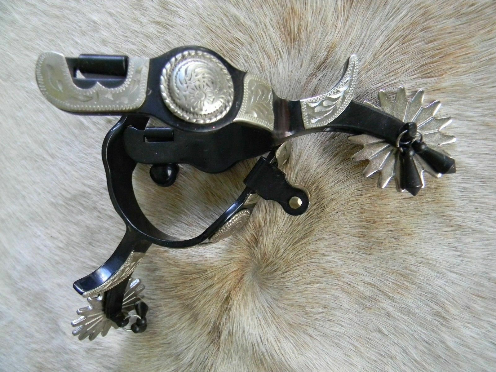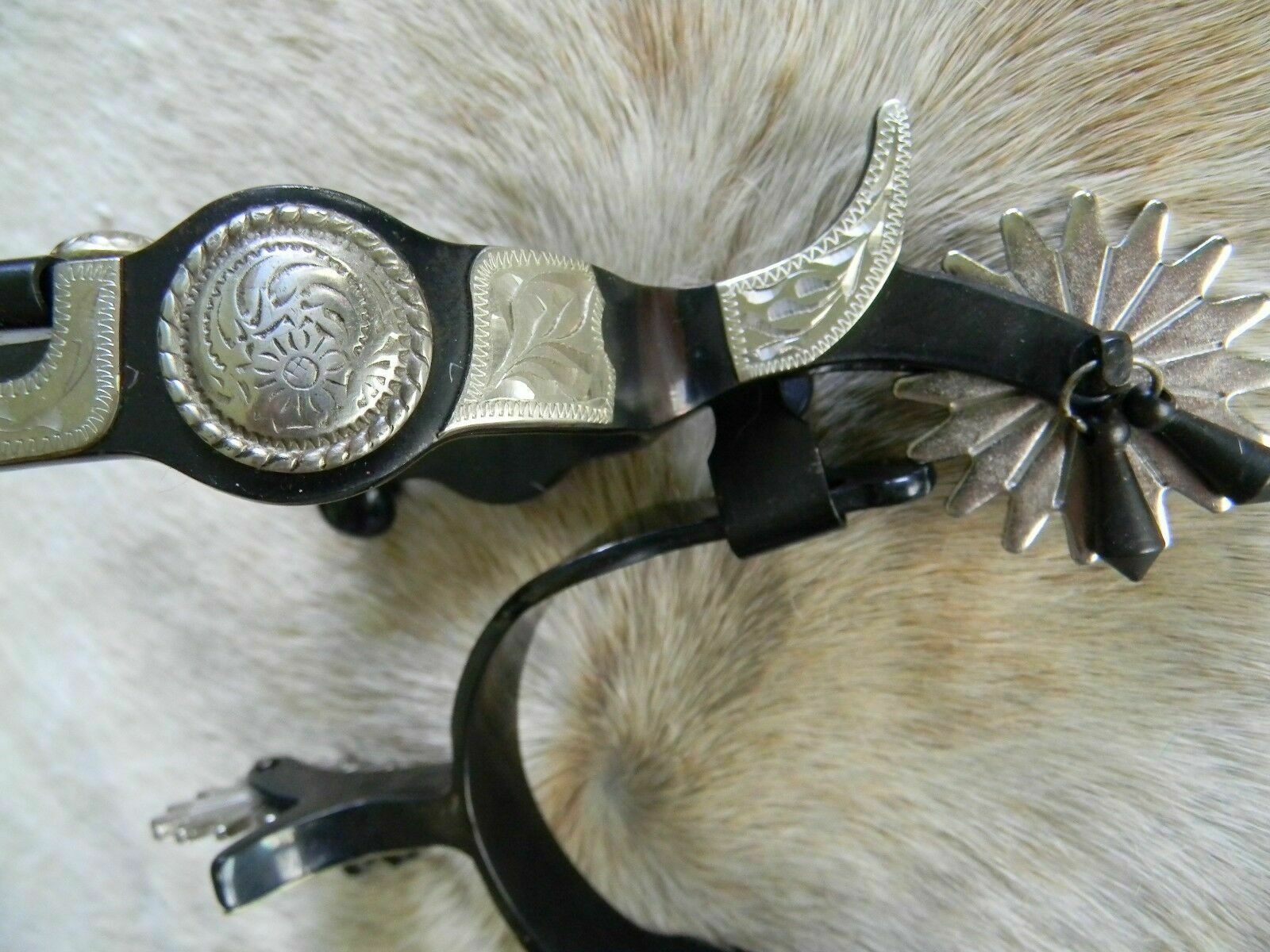 Showman Black Steel Jingle Bob Spur with Silver Engraved Accents. MPN 25990