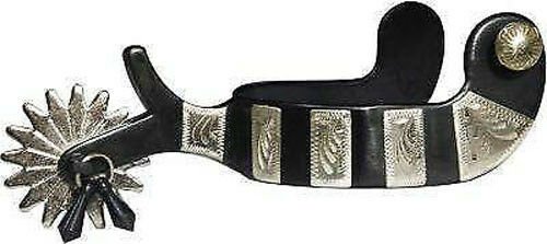 Showman Black Steel Jingle Bob Spur with Engraved Silver Accents. MPN 257373